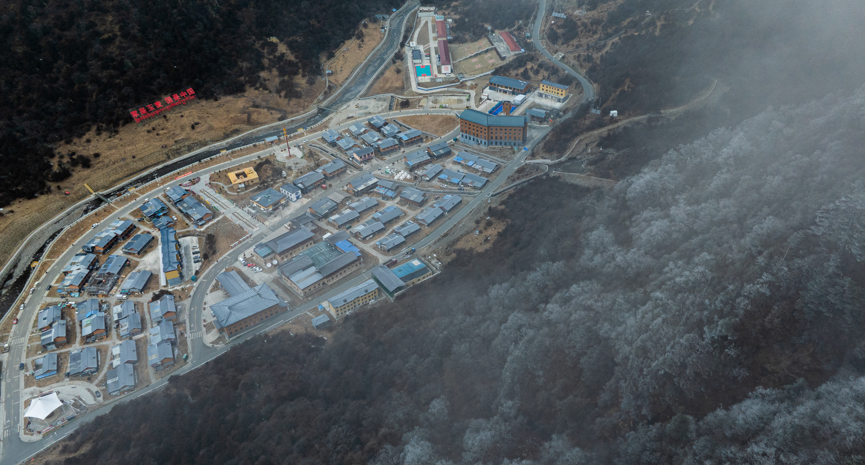 这是2月5日拍摄的潸潸中的玉麦乡全景(无东谈主机像片)。新华社记者 丁增尼达 摄
