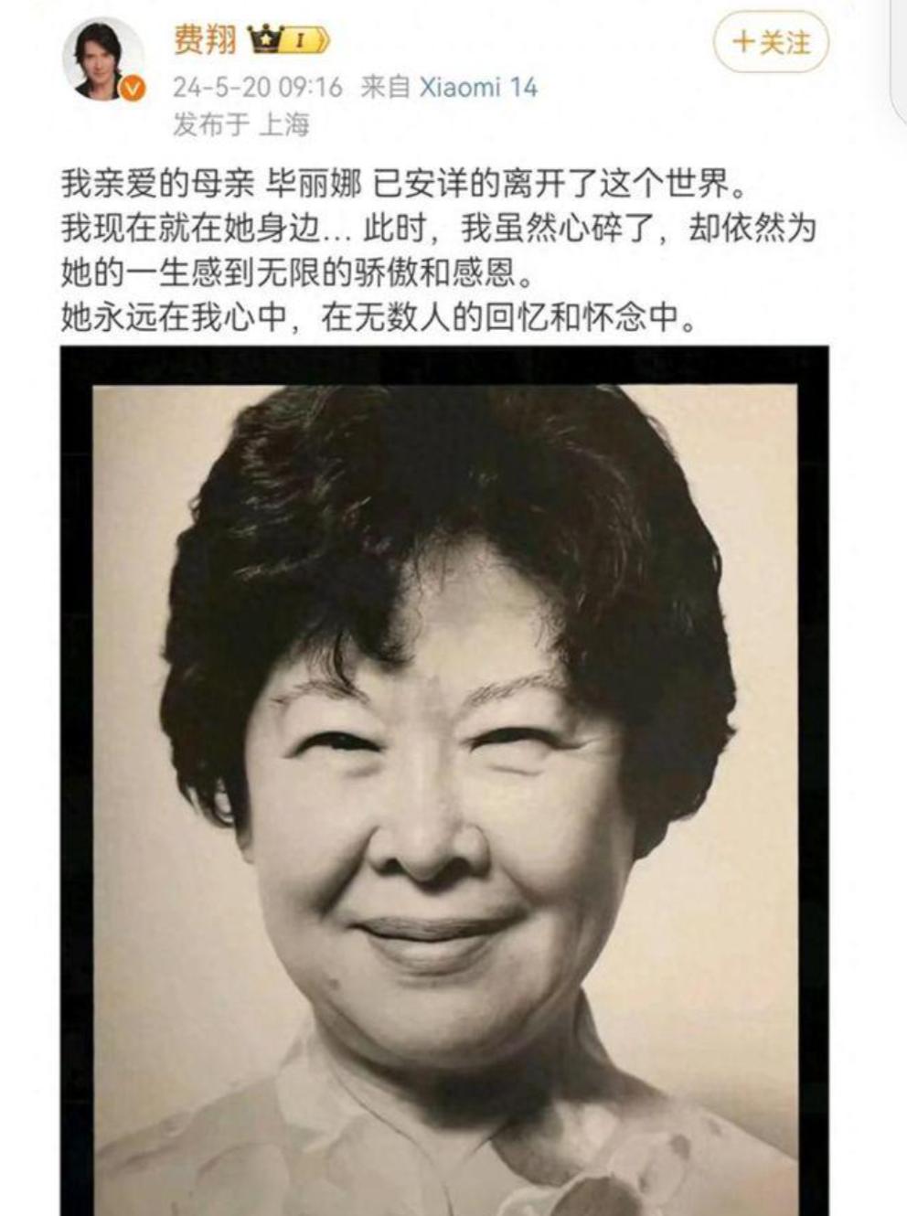 2024年5月,93岁的毕丽娜耗费了,费翔亲手送走了我方终末一个亲东说念主。