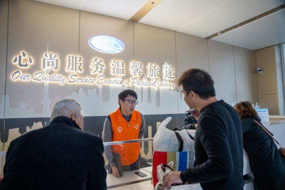 “小甜橙”在处事台为游客解答疑问