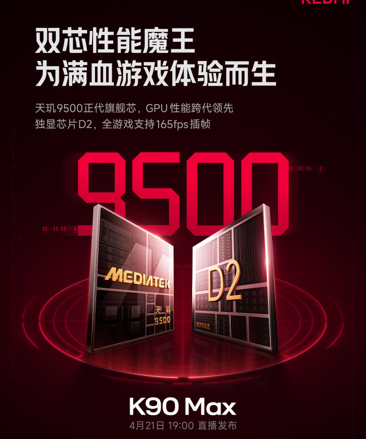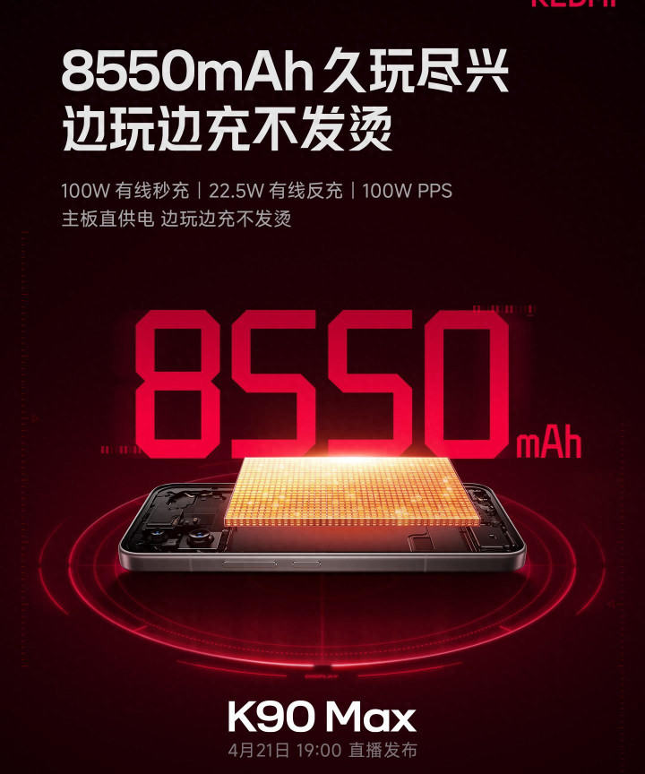开云体育 红米K90 Max配8550毫安电板, 165帧插帧加风冷香吗