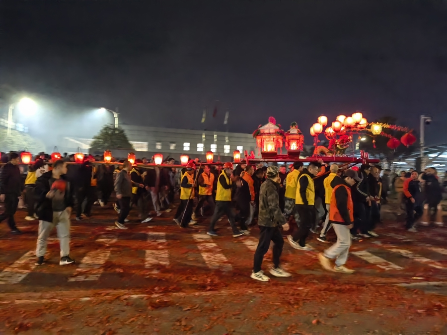 正月十四傍晚,号铳打响后,“龙头”起架,迎龙灯的行径也就精致启动了。