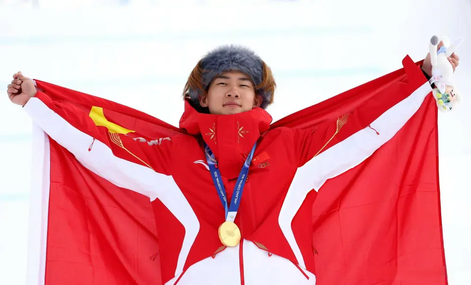 米兰冬奥会单板滑雪男人坡面险阻妙技决赛,苏翊鸣以82.41分赢得金牌,这是中国代表团本届冬奥会赢得的第一枚金牌。