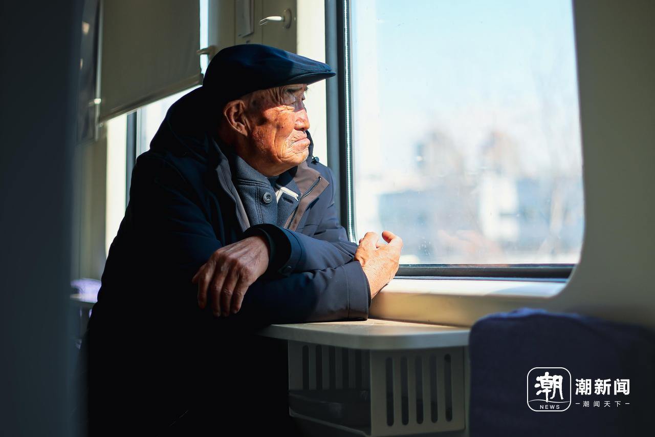 列车上看情状的大爷。谢春晖/摄