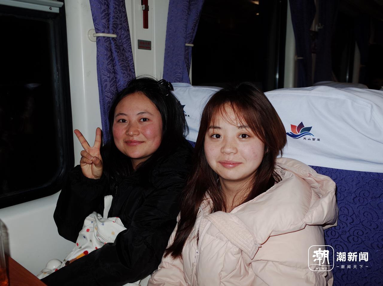 收到合影时,她们险些同期“哇”了一声。“从来没在火车上拍过照!”她们说,这张列车上的合影跟这段寒假的打工阅历都值得挂念。