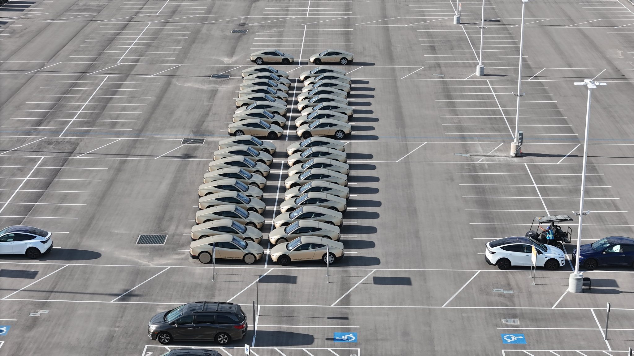 IT之家能干到,得州超等工场不雅察者、无东说念主机拍摄者乔 · 泰格迈尔在顶住平台 X 发文称,约 60 台 Cybercab 分两列整皆停放在工场的出厂待运区,这是迄今末端该车型现身数目最多的一次。